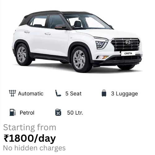 Hyundai Creta: The Creta is a popular compact SUV that offers a stylish design, comfortable interiors, and a smooth driving experience. It provides ample space for passengers and luggage, making it suitable for exploring Goa's scenic landscapes.